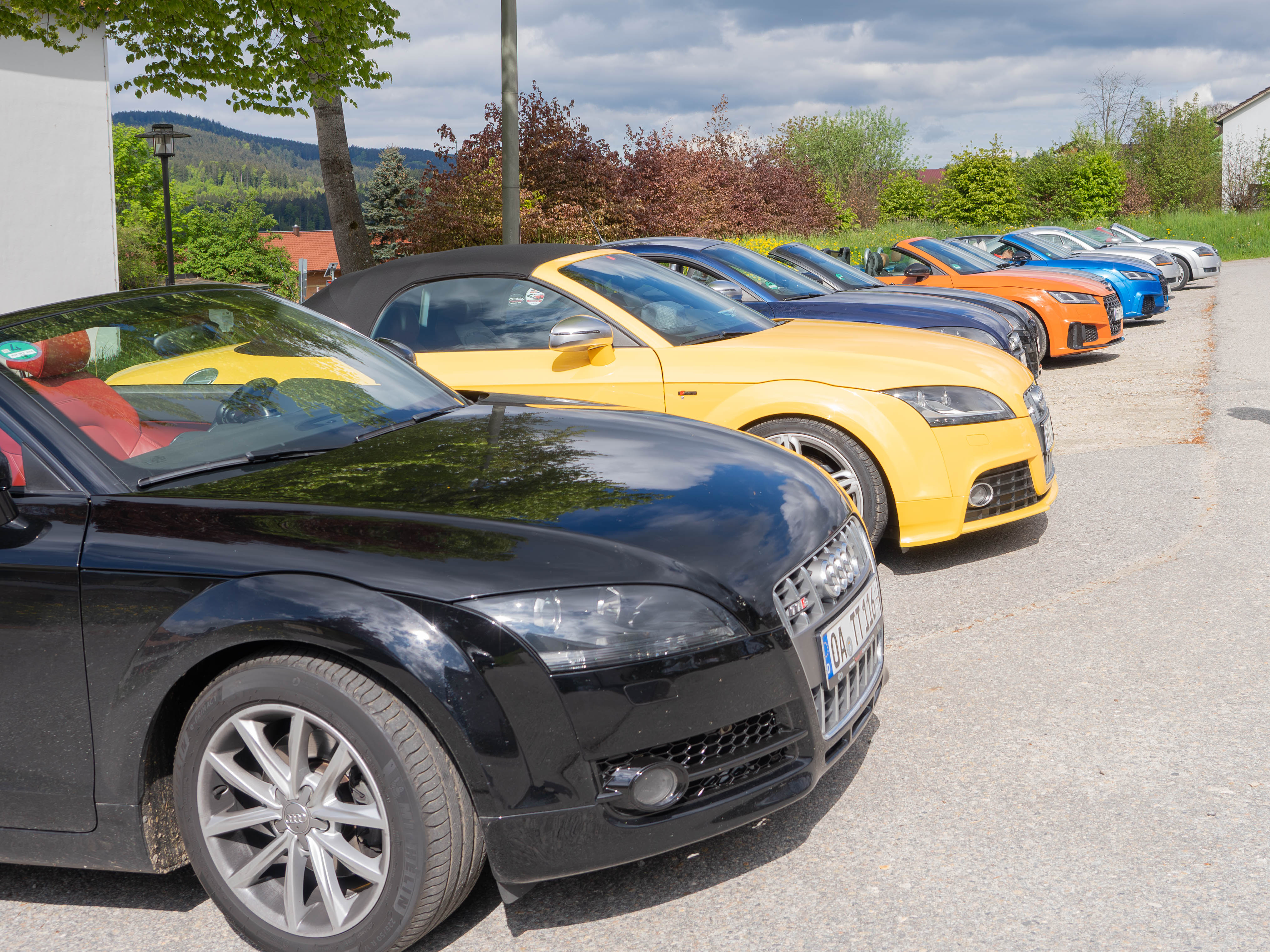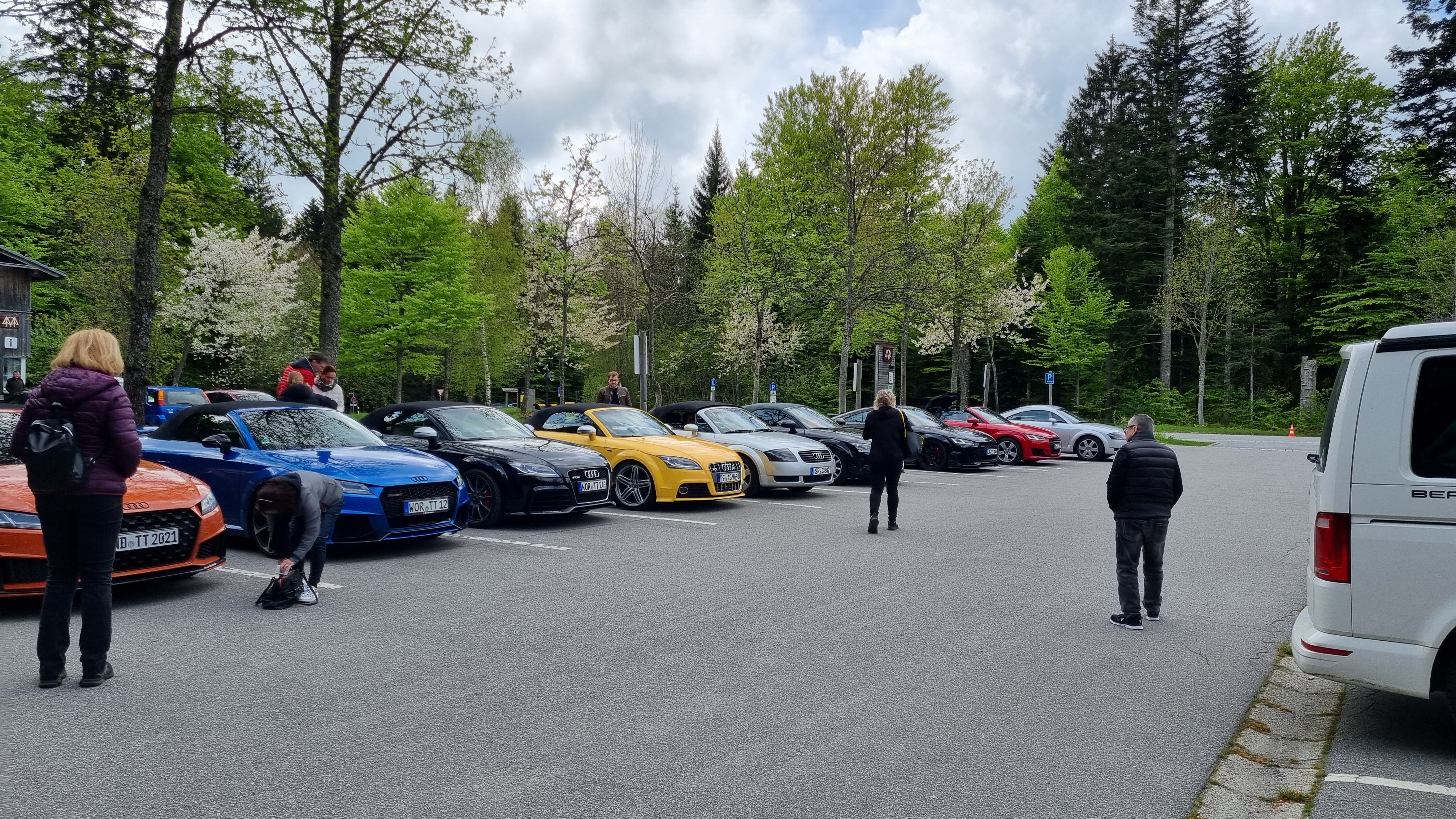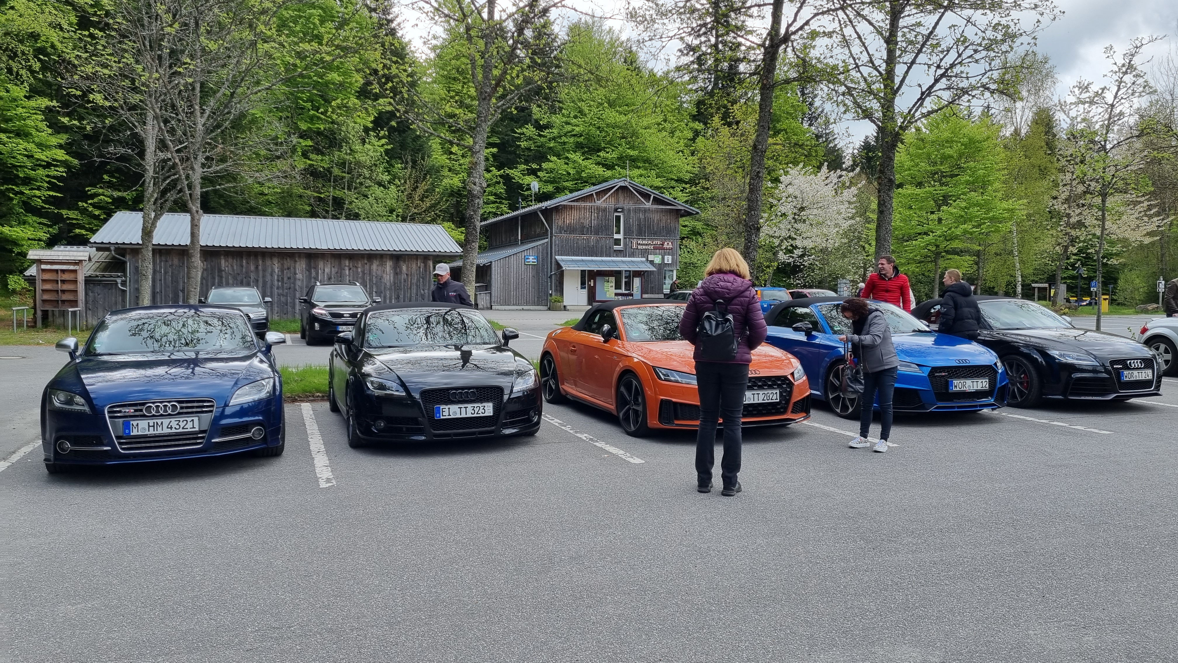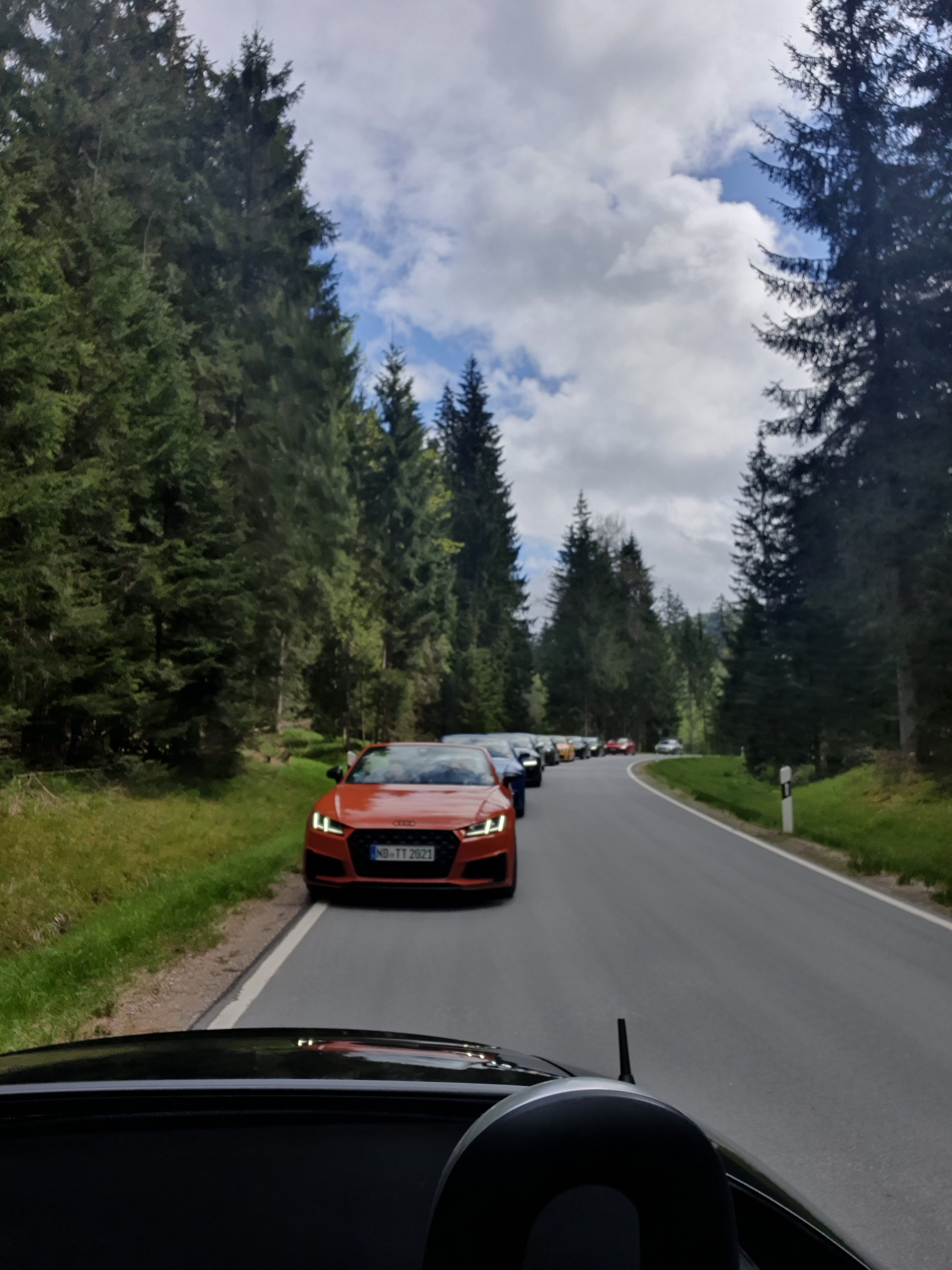Am Samstag sind wir vom Hotel über die Arber Talstation losgefahren. Dort hat uns eine Staffel Polizisten empfangen, die eigentlich die Motorradfahrer es Wochenendes kontrollieren wollten. Es war ihnen langweilig und zwei unserer TTs waren getunt. Nach ca. 15 Minuten Check der Papiere ging es weiter.